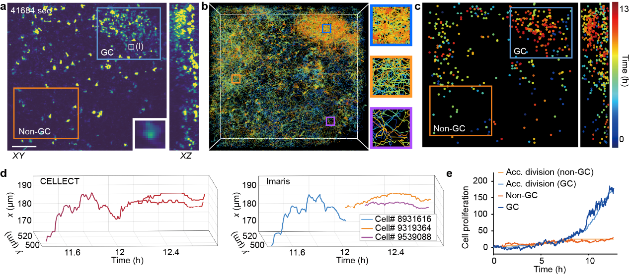 Figure 3. Automated tracking of germinal center formation and cell division events of in the mouse lymph node during immune response.